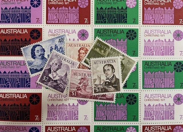 Decimal stamps refer to postage stamps denominated in decimal currency units, as opposed to the traditional non-decimal currency units such as pence and shillings. Decimalization is the process of changing a currency system from non-decimal to decimal, where units are based on powers of 10. This typically involves converting currency units such as pence, shillings, or cents into units based on multiples of 10, such as dollars, euros, or cents. Decimal stamps are designed to reflect this change in currency system, featuring values in the new decimal units. For example, instead of a stamp being denominated as "3 shillings and 6 pence", it might be denominated as "35 new pence" after decimalization.