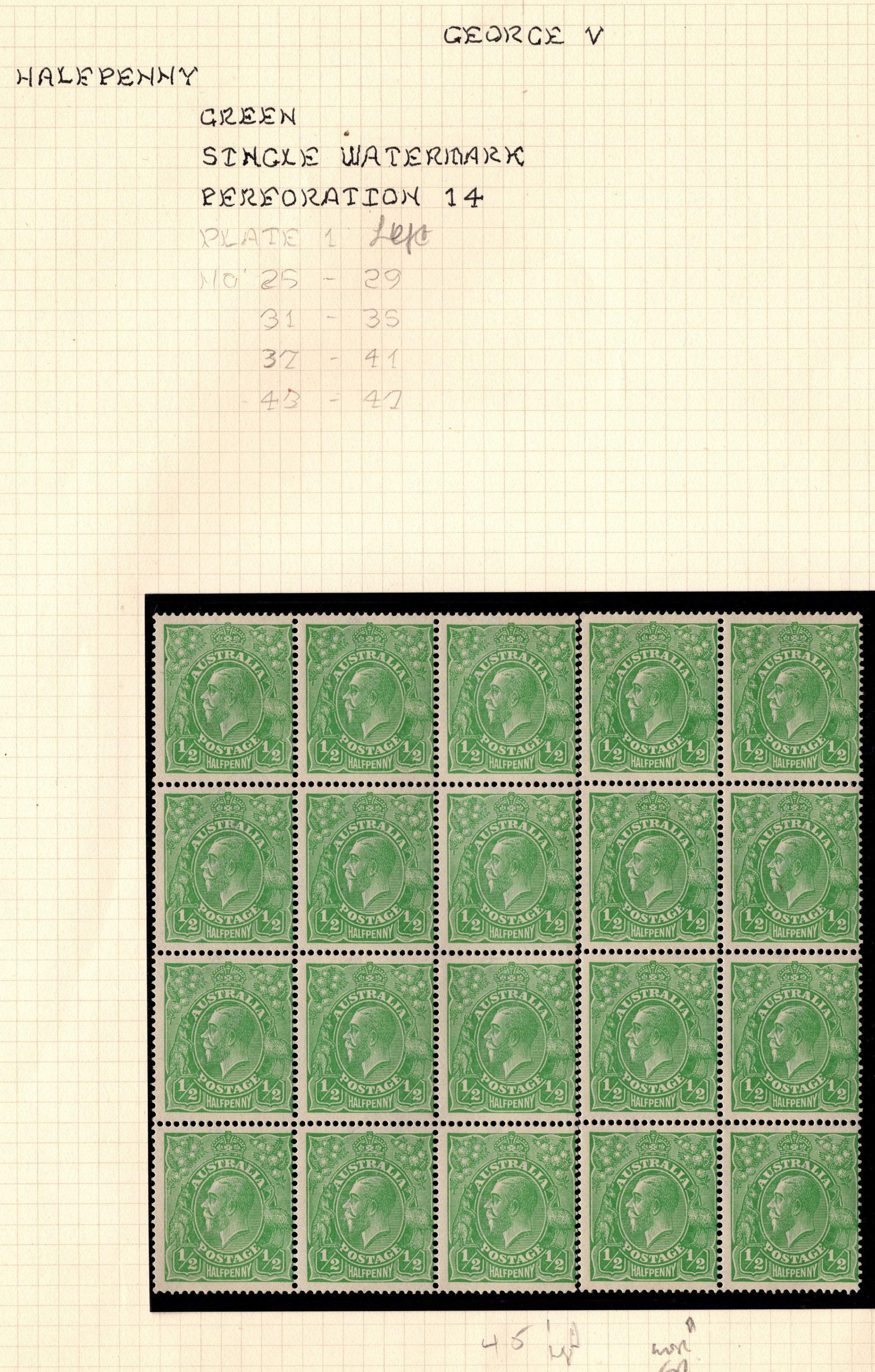 Australia KGV ½d Green 2 Mint Blocks x Andrew Johnston Collection