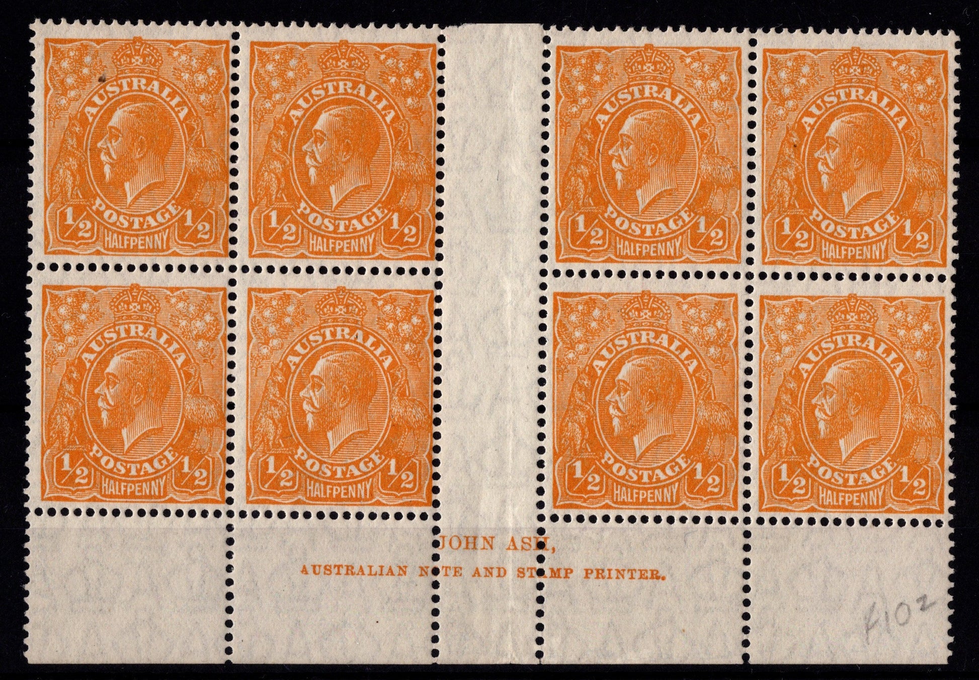 Australia KGV ½ d Orange Block of 8 Mint Never Hinged x Andrew Johnston Collection