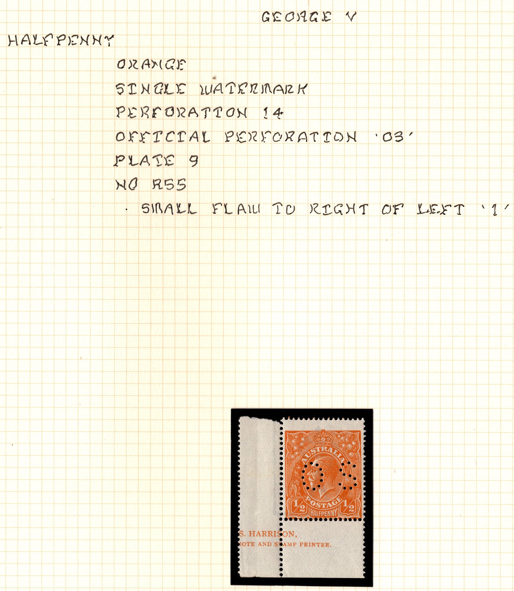 Australia KGV ½d Orange OS Perf Part Harrison Imprint x Andrew Johnston Collection