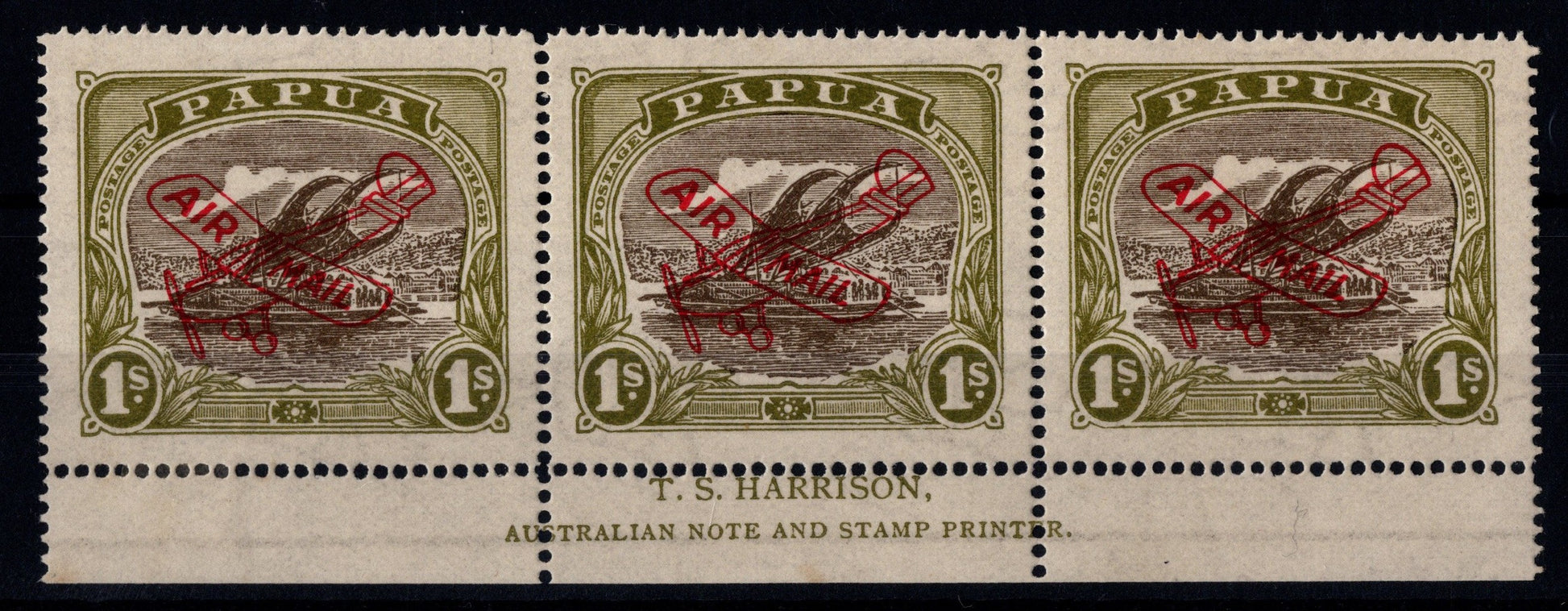 Papua Lakatoi Mint Strip with Overprint and Imprint