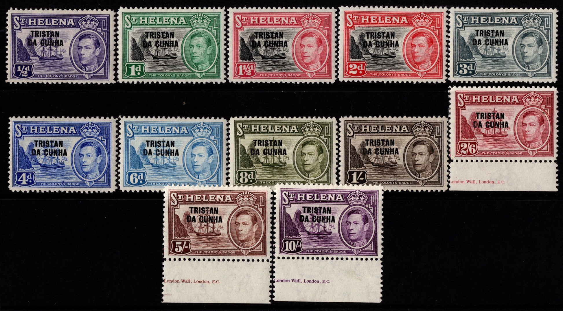 Tristan Da Cunha Overprints on St Helena Mint Set 1952